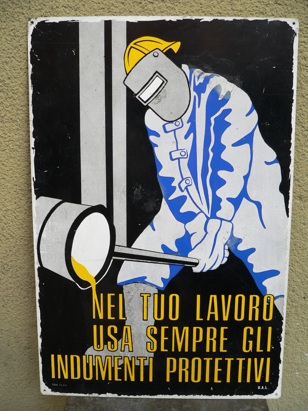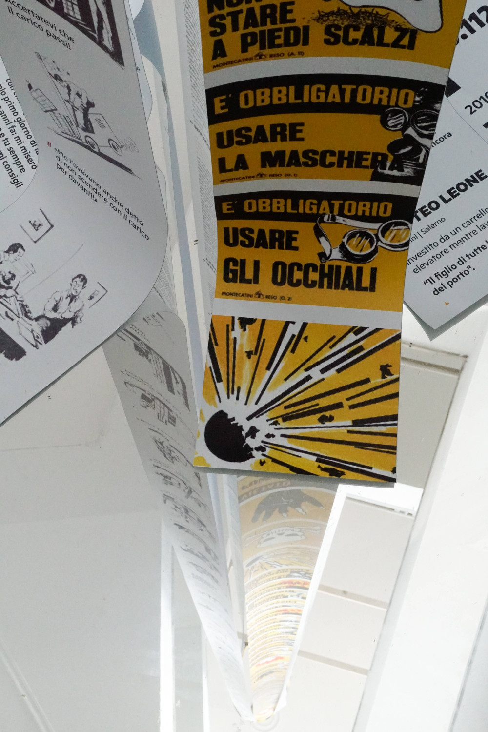 Il percorso espositivo si muove lungo tre assi: la messa a fuoco di misure di prevenzione da parte tecnici specializzati (ingegneri e medici); la comunicazione alle aziende e ai dipendenti in tema di sicurezza del lavoro; infine, le forme della protesta e della richiesta di misure di protezione da parte delle organizzazioni sindacali. La mostra documenta anche l’evoluzione della comunicazione antinfortunistica, sollecitata dal radicalizzarsi del conflitto operaio nel corso degli anni Sessanta. Da questo punto di vista, particolare rilievo assumo il lavoro di un artista come Eugenio Carmi a Genova e il suo rapporto con Italsider.