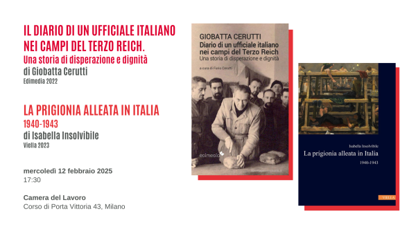 Prosegue il ciclo d'incontri dedicato all'Ottantesimo della Liberazione. Il secondo incontro, sulle esperienze di prigionia, vedrà ospiti Isabella Insolvibile, autrice di La prigionia alleata in Italia. 1940-1943 (Viella 2023) e Il diario di un ufficiale italiano nei campi del Terzo Reich. Una storia di disperazione e dignità, di Giobatta Cerutti e a cura di Furio Cerutti (Edimedia 2022). Nicola Labanca e Nicolò Da Lio dialogheranno con Isabella Insolvibile e Furio Cerutti.