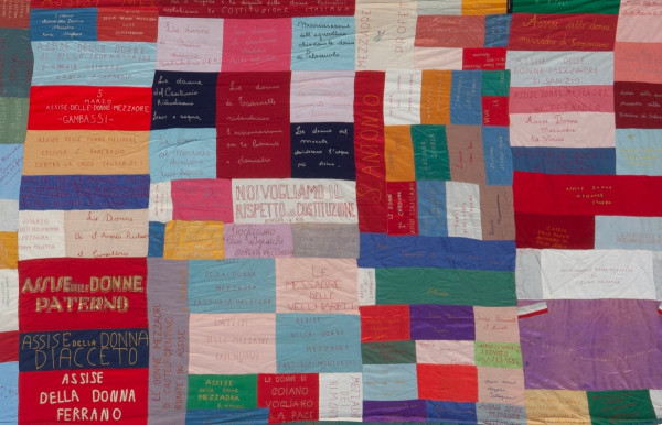 Pace, cura e lotta nelle opere delle street artist Lediesis e nelle bandiere cucite dalle lavoratrici negli anni Cinquanta