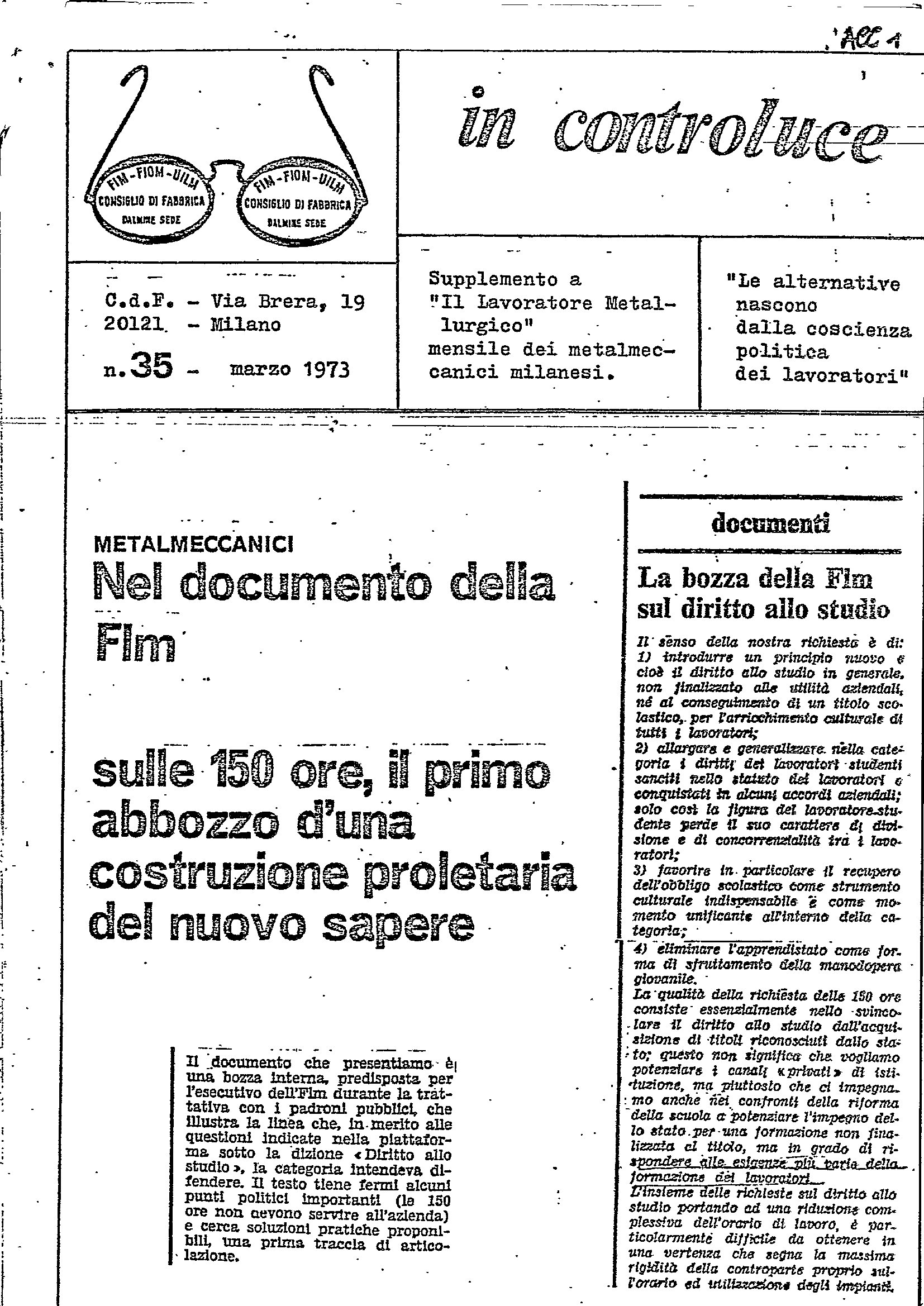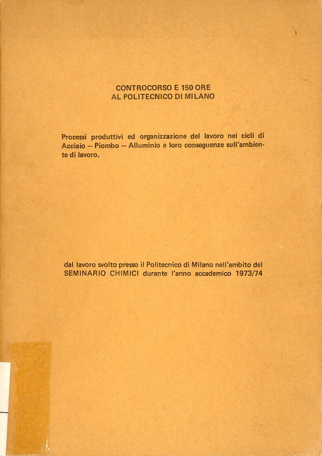 Al Politecnico di Milano, nell’ambito del Seminario chimici, si tenne durante l’anno accademico 1973/74 un controcorso 150 ore su processi produttivi ed organizzazione del lavoro nei cicli di acciaio-piombo alluminio e loro conseguenze sugli ambienti di lavoro dove, accanto ai temi più specificamente tecnici, trovò posto la trattazione di argomenti come le lotte operaie e la nocività in fabbrica.
