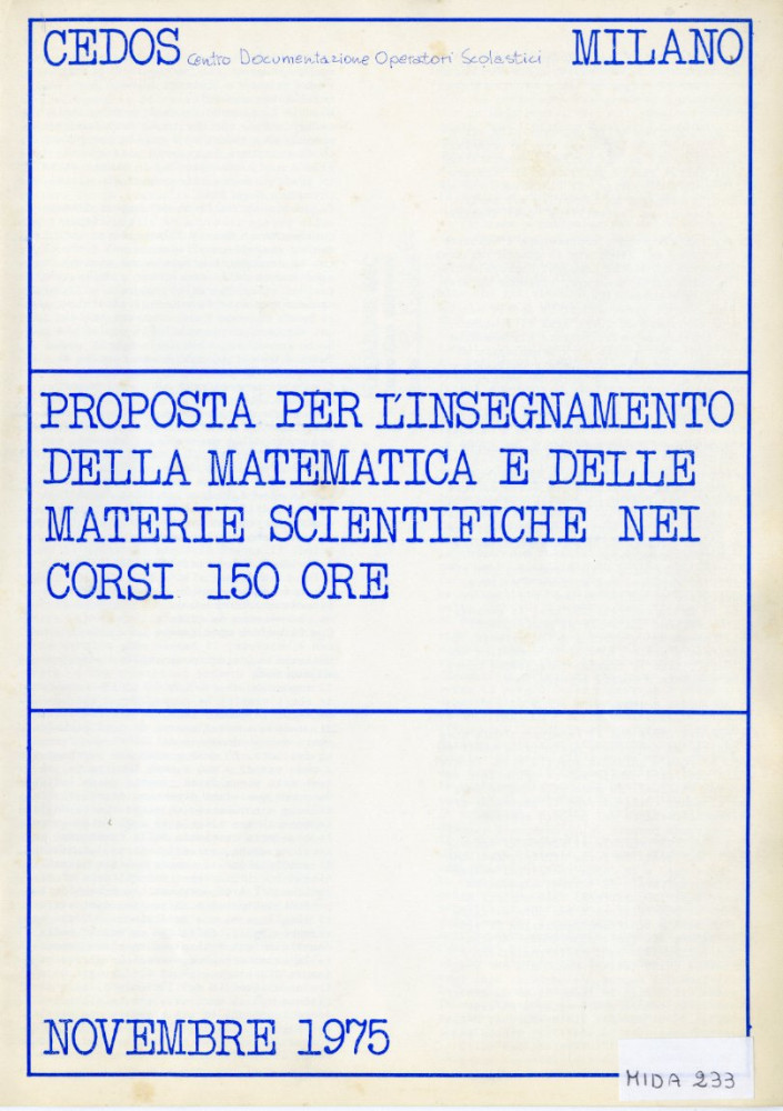 I corsi delle 150 ore furono l’occasione per la costruzione di percorsi di conoscenza che mettevano in discussione il tecnicismo dei saperi tradizionali. A questo sforzo contribuirono molte agenzie tra le quali, a Milano, il Cedos – Centro di Documentazione Operatori Scolastici – nato per supportare la FLM milanese nella messa a punto dei corsi e artefice, nell’esempio sotto riportato, di una proposta per l’insegnamento della matematica e delle materie scientifiche che insisteva sulla dimensione diacronica di queste discipline e sui nessi con la riflessione filosofica.