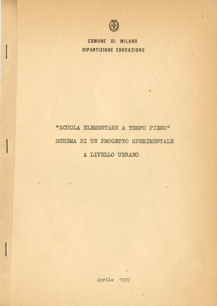Nello stesso fondo si conserva un documento programmatico del Comune di Milano dell’aprile 1972: “Scuola elementare a tempo pieno. Schema di un progetto sperimentale a livello urbano.”