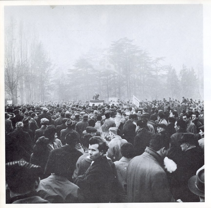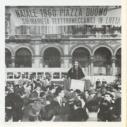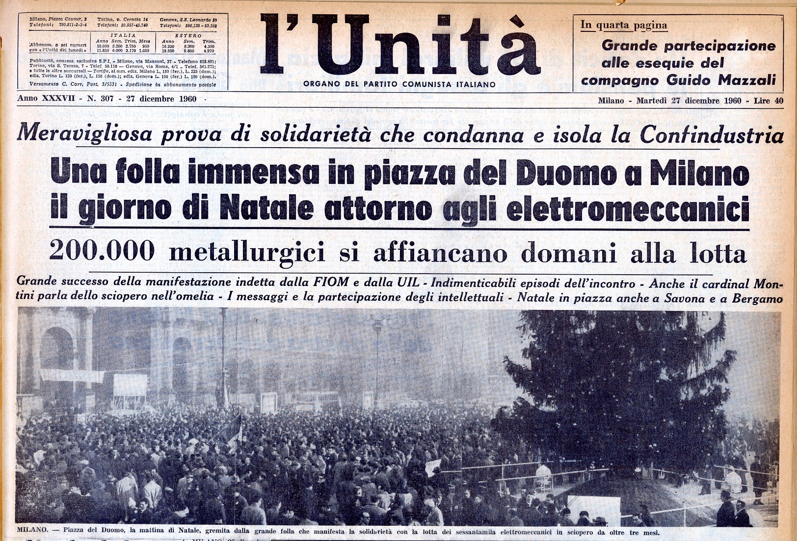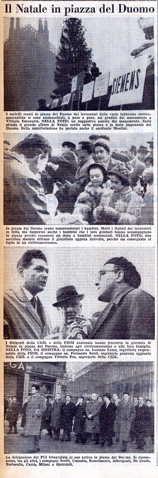 Il 25 dicembre 1960 in piazza Duomo si riunirono più di 30.000 cittadini milanesi in solidarietà con gli operai elettromeccanici in lotta da mesi per il rinnovo del contratto integrativo di lavoro. L’iniziativa era stata indetta dalla Fiom Cgil e dalla Uil. La Cisl, pur coinvolta nella vertenza, aveva ritenuto di non dovervi aderire per timore che l’interferenza con i riti del Natale potesse infastidire le gerarchie cattoliche.