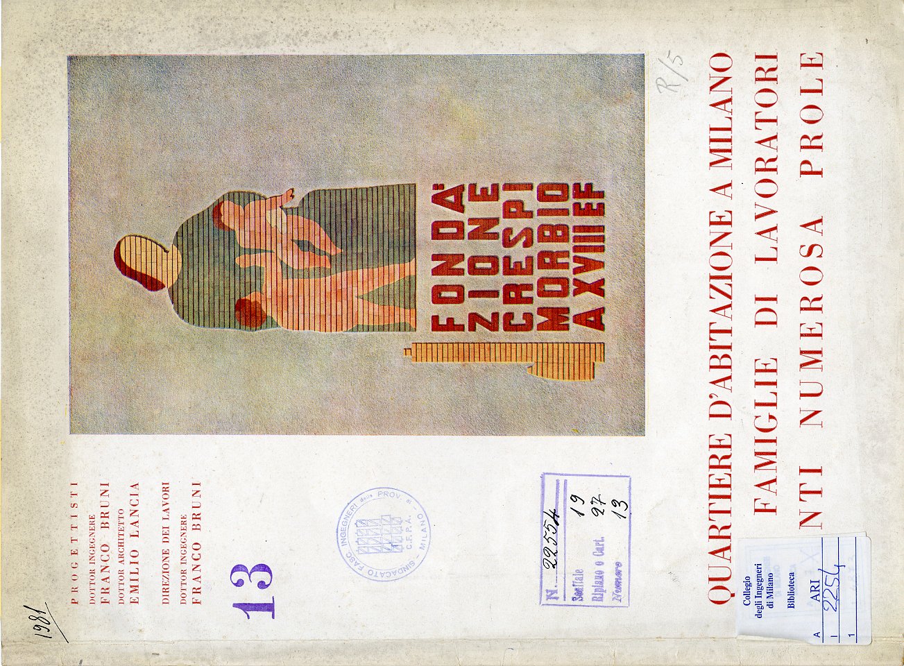 La citazione è tratta da un fascicolo della Fondazione Crespi Morbio – Quartiere di abitazione a Milano per famiglie di lavoratori aventi numerosa prole – edito da Garzanti presumibilmente nel 1941, che è compreso nella Biblioteca "Leo Finzi" della Fondazione Collegio degli ingegneri e architetti di Milano, conservata presso Fondazione ISEC.