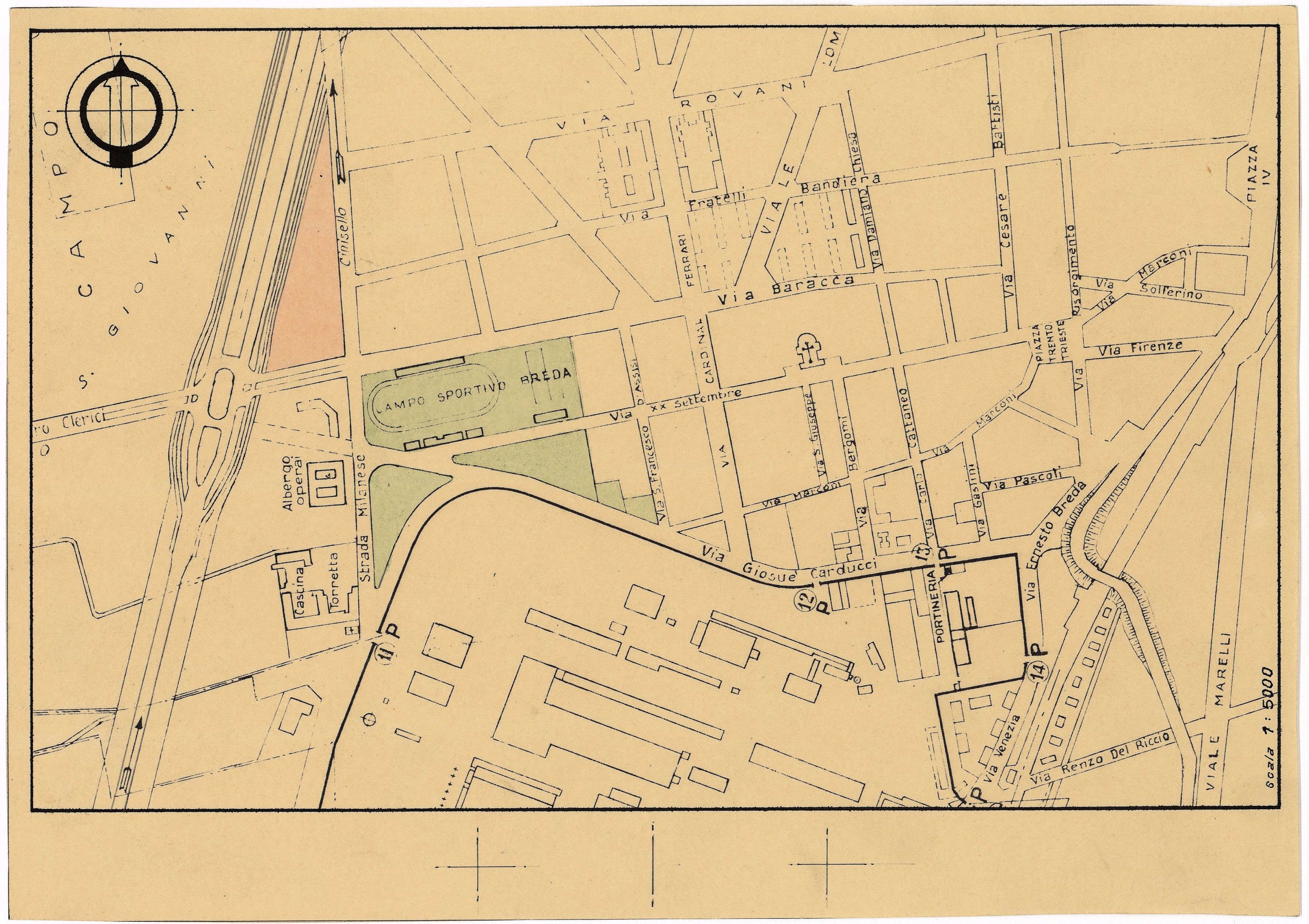 Successivamente, nel 1936, Broglio aveva progettato a Sesto, sempre per i lavoratori della Breda, il quartiere Luigi Razza tra le vie Rovani e F.lli Bandiera. Si trattava in questo caso di case a corte e in linea. L’ultimo progetto dell’architetto Broglio per la Breda fu elaborato nel 1941 e riguardava un edificio in linea da costruirsi in via Damiano Chiesa, che “prevedeva due gruppi di fabbricati, a 3 ed a 4 piani fuori terra, costituiti da alloggi di 2-3 locali”. Esso però non venne realizzato così come l’aveva concepito l’architetto “per la sospensione, decretata nei primissimi mesi del 1942, di tutti i lavori edili non aventi carattere bellico” (“Cenni sull’interessamento della Breda per dare alloggio a propri dipendenti”, in Archivio Fondazione ISEC, fondo Breda IV sez. – Dean). Questa iniziativa edilizia fu portata a termine solo nel 1948 con modifiche al piano originale.