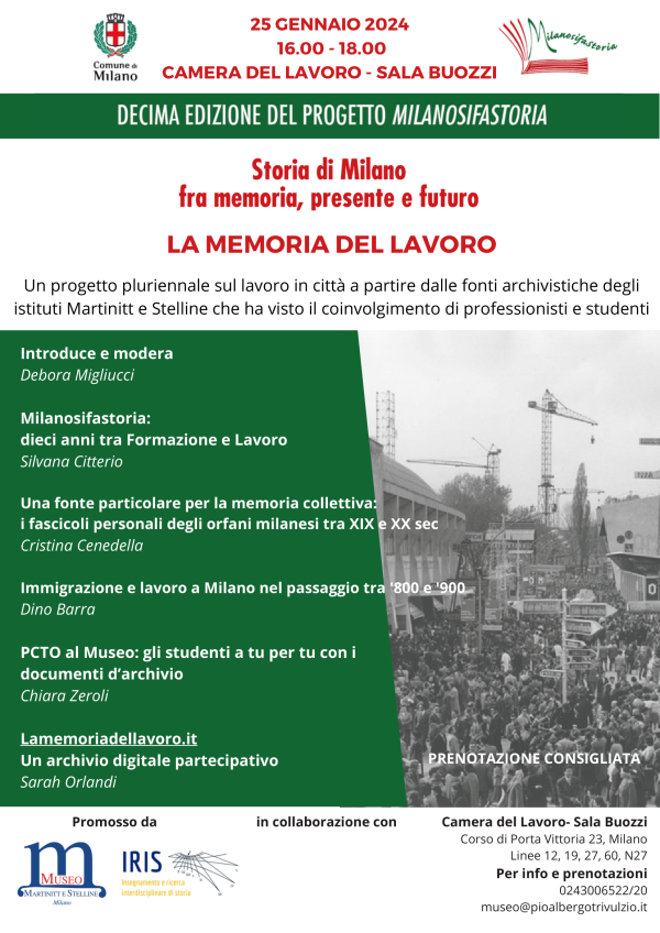Mercoledì 25 gennaio, alle 16, nella Sala Buozzi della Camera del Lavoro si svolgerà il seminario La memoria del lavoro, nell'ambito del palinsesto Milano si fa storia: un progetto pluriennale sul lavoro in città a partire dalle fonti archivistiche degli istituti Martinitt e Stelline che ha visto …