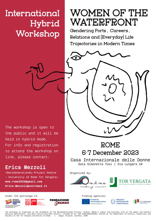 Il 6 e il 7 dicembre 2023 si terrà, alla Casa internazionale delle Donne di Roma, il workshop Women of the Waterfront. Gendering Ports, Careers, Relations and (Everyday) Life Trajectories in Modern Times. Il workshop è aperto al pubblico e si svolgera in modalità ibrida, in presenza e online, Per …