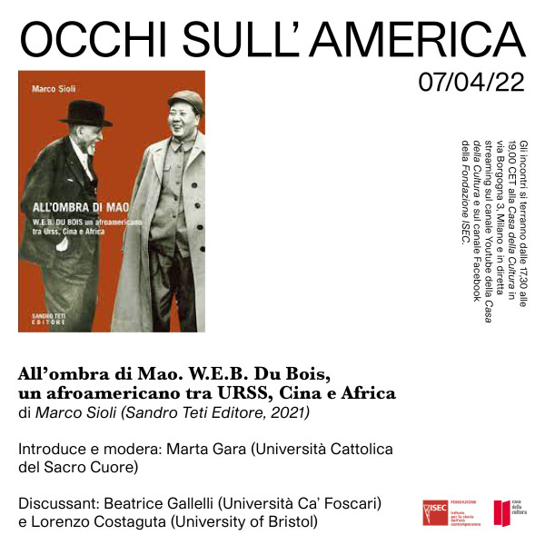Fondazione ISEC e Casa della Cultura presentano il secondo incontro del ciclo di presentazioni "Occhi sull'America". Il 7 Aprile 2022 dalle 17:30 alle 19:00 presso la Casa della Cultura (via Borgogna 3, Milano): All’ombra di Mao. W.E.B. Du Bois, un afroamericano tra URSS, Cina e Africa di Marco …