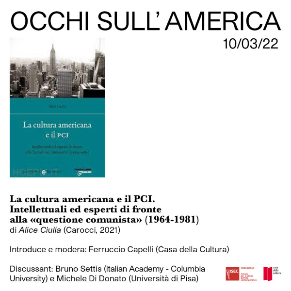 Fondazione ISEC e Casa della Cultura presentano il secondo incontro del ciclo di presentazioni "Occhi sull'America". occhi-sullamerica.pdf Il 10 Marzo 2022 dalle 17:30 alle 19:00 presso la Casa della Cultura (via Borgogna 3, Milano): La cultura americana e il PCI. Intellettuali ed esperti di fronte …
