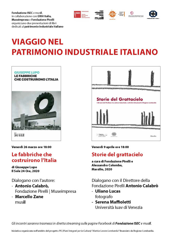 Fondazione ISEC e musil, in collaborazione con Erih, Fondazione Pirelli, Museimpresa, vi invitano al webinar per discutere il volume Storie del grattacielo a cura di Fondazione Pirelli e Alessandro Colombo (Marsilio, 2020). Introduce e modera: • Antonio Calabrò, Fondazione Pirelli | Museimpresa …