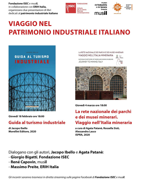 Fondazione ISEC e musil, in collaborazione con ERIH Italia, vi invitano al webinar per discutere il volume di Iacopo Ibello, Guida al turismo industriale (Morellini Editore, 2020). Dialogano con l’autore: • Giorgio Bigatti, Fondazione ISEC • René Capovin, musil • Massimo Preite, ERIH Italia Giovedì …