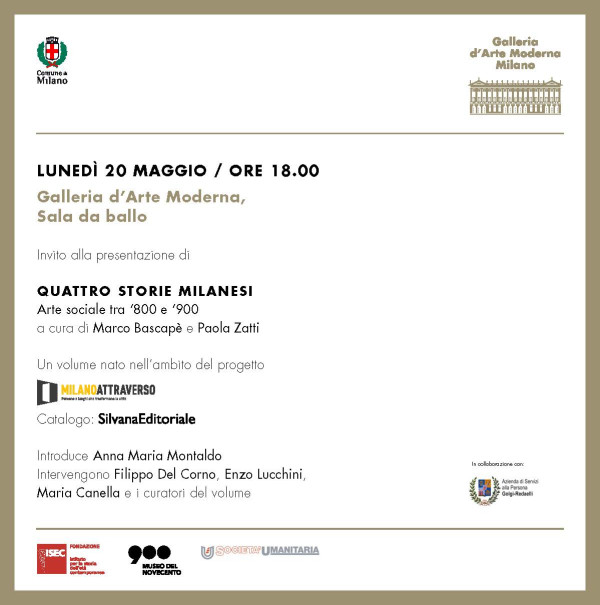 Fondazione ISEC e la rete del progetto MilanoAttraverso vi invitano alla presentazione del volume a cura di Marco Bascapè e Paola Zatti Quattro storie milanesi. Arte sociale tra ‘800 e ‘900. Il volume nasce dal ciclo di conferenze “Arte sociale a Milano”, organizzato nel 2018 dalla Galleria d’Arte …