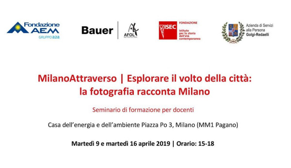Nell’ambito del progetto “MilanoAttraverso. Esplorare il volto della città” promosso da ASP Golgi Redaelli, Cfp Bauer, Fondazione AEM e Fondazione ISEC, vi invitiamo ai seminari di formazione per docenti “Esplorare il volto della città: la fotografia racconta Milano”, in collaborazione con …