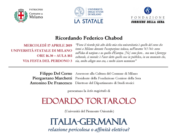 Fondazione ISEC vi invita alla lectio magistralis in ricordo di Federico Chabod promossa da Università degli studi di Milano e Fondazione Corriere della sera, in collaborazione con Associazione Nazionale Ex Deportati nei campi nazisti, Casa della Cultura, Fondazione Centro di Documentazione Ebraica …