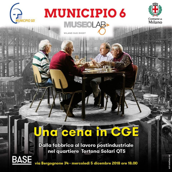 Presentazione e discussione del video Una cena in Cge-Compagnia Generale di Elettricità. Dalla fabbrica al lavoro postindustriale nel quartiere Tortona Solari QTS, realizzato da MuseoLab6: quattro ex operai della CGE (Compagnia Generale di Elettricità) si incontrano a cena all’Ex Ansaldo, oggi …