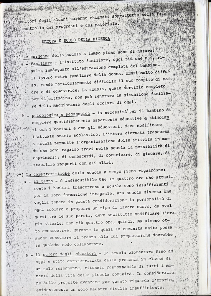 Nello stesso fondo si conserva un documento programmatico del Comune di Milano dell’aprile 1972: “Scuola elementare a tempo pieno. Schema di un progetto sperimentale a livello urbano.”
