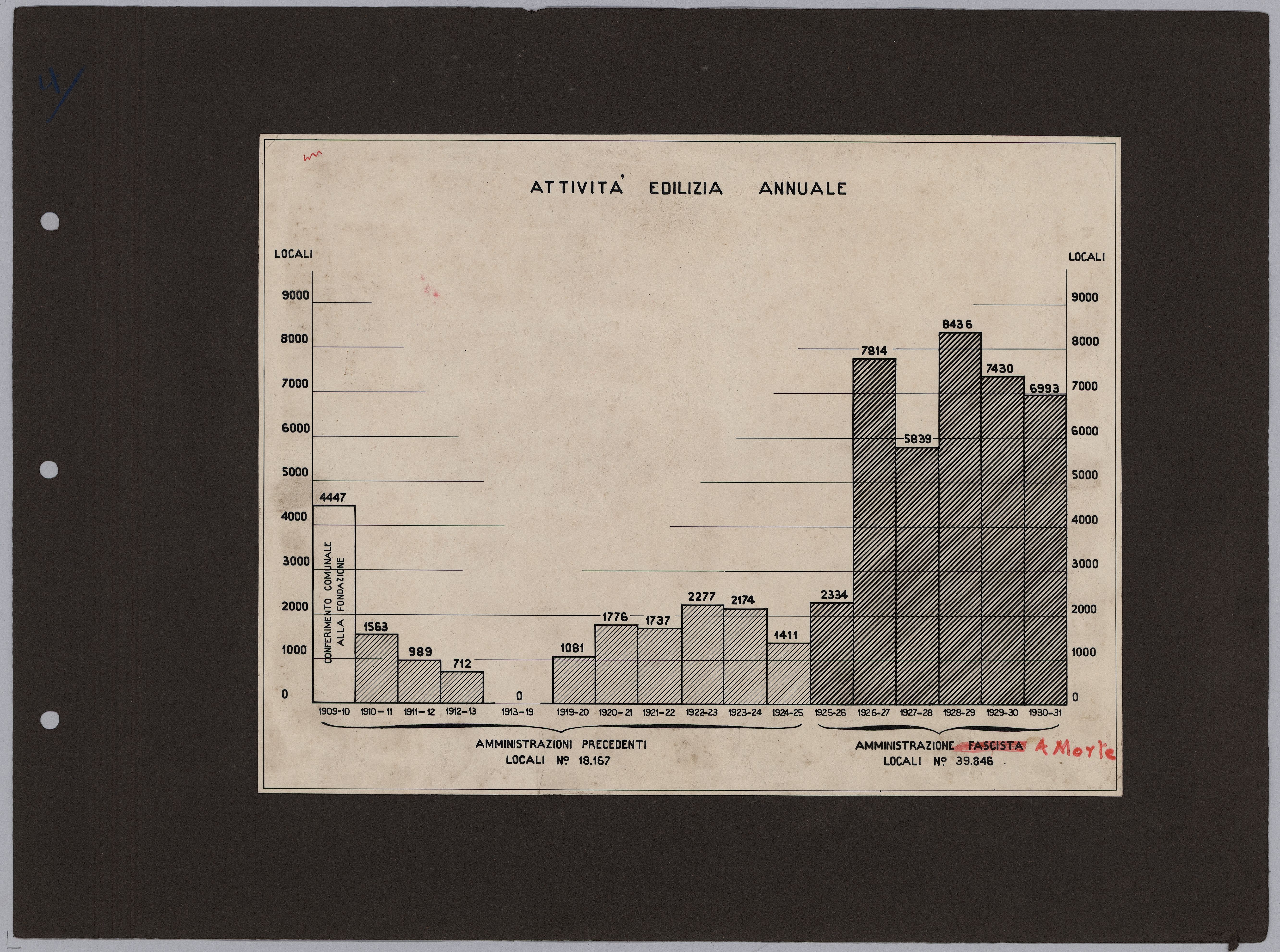 Il grafico che segue, riportato in apertura, lascia intuire il possibile anno di pubblicazione – 1931 o 1932 – e anche lo scopo propagandistico dell’opera che è di sottolineare l’imponenza degli interventi da parte di IACP nel periodo delle Amministrazioni podestarili milanesi.