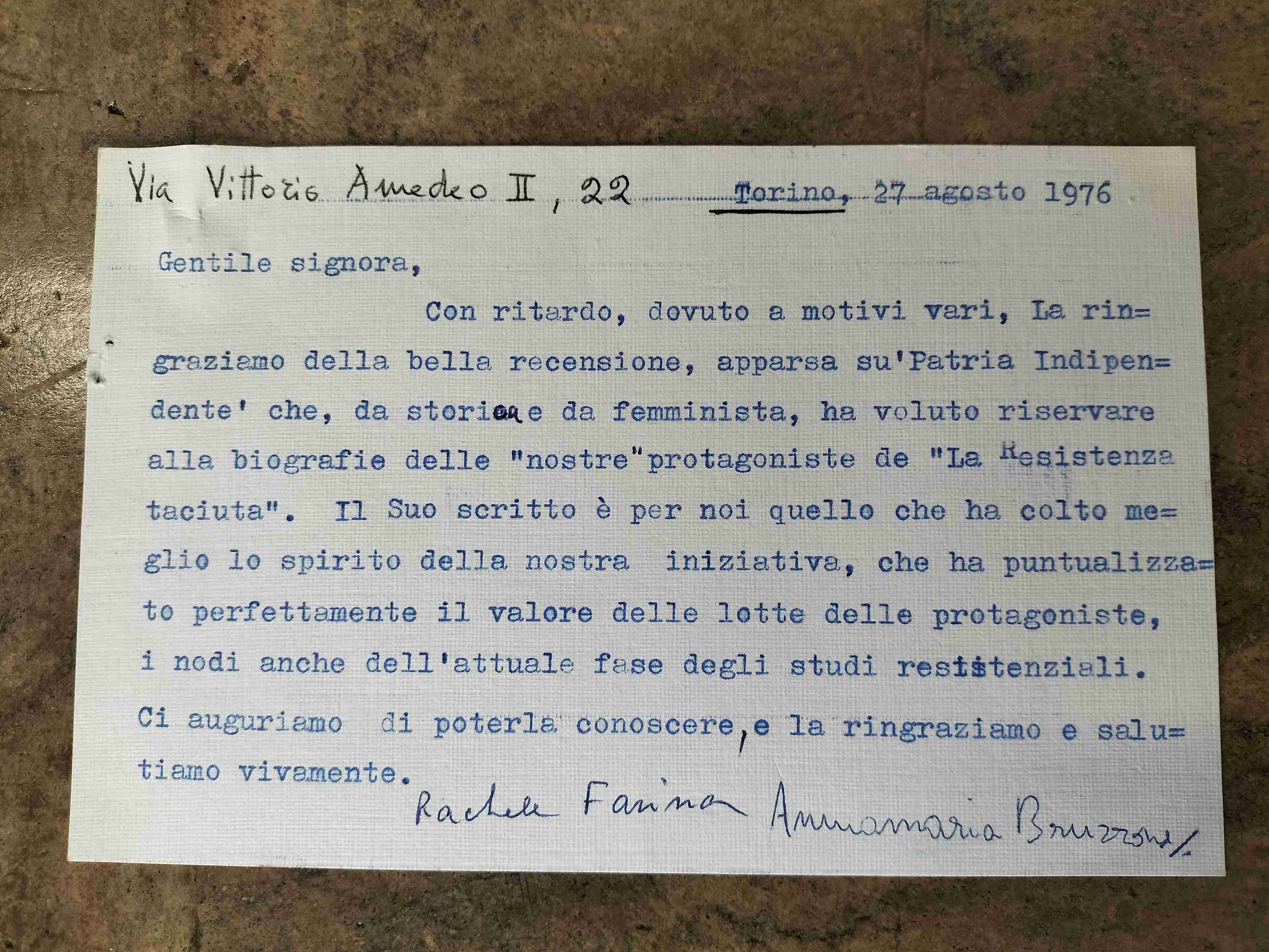 La rivendicazione, dunque, di una continuità tra femminismo e Resistenza, che del resto emerge in tanti altri luoghi nelle carte di Gadola.