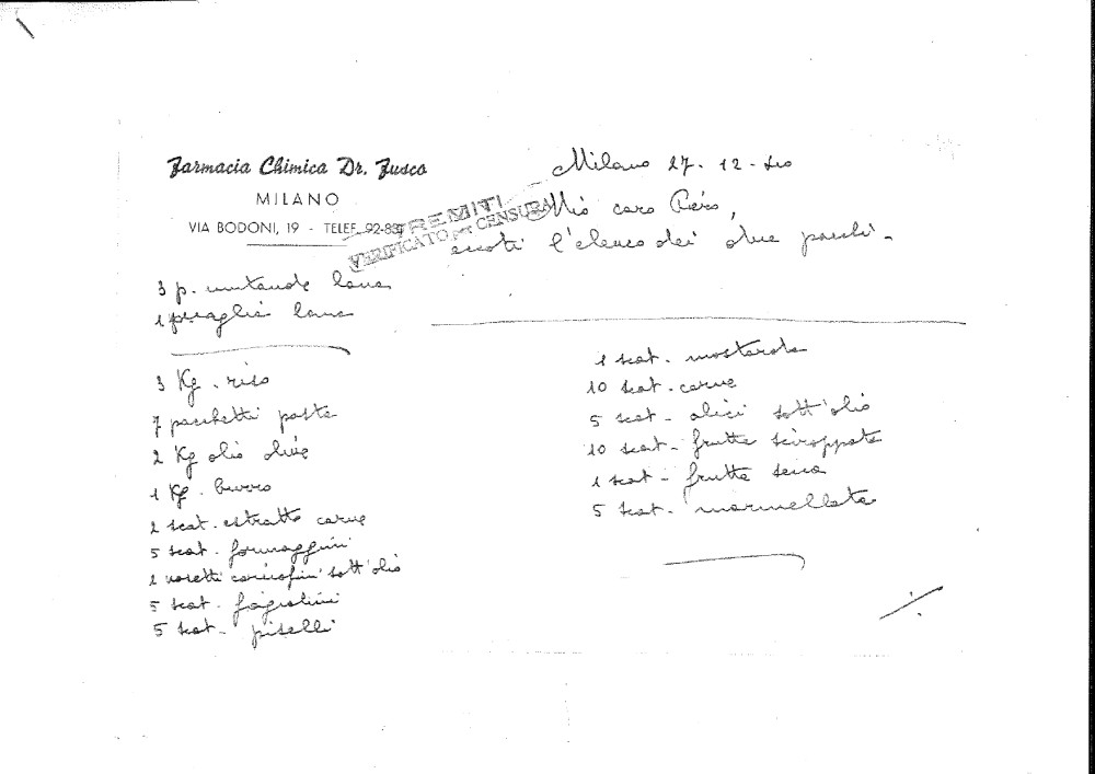 Lettera con il timbro della censura