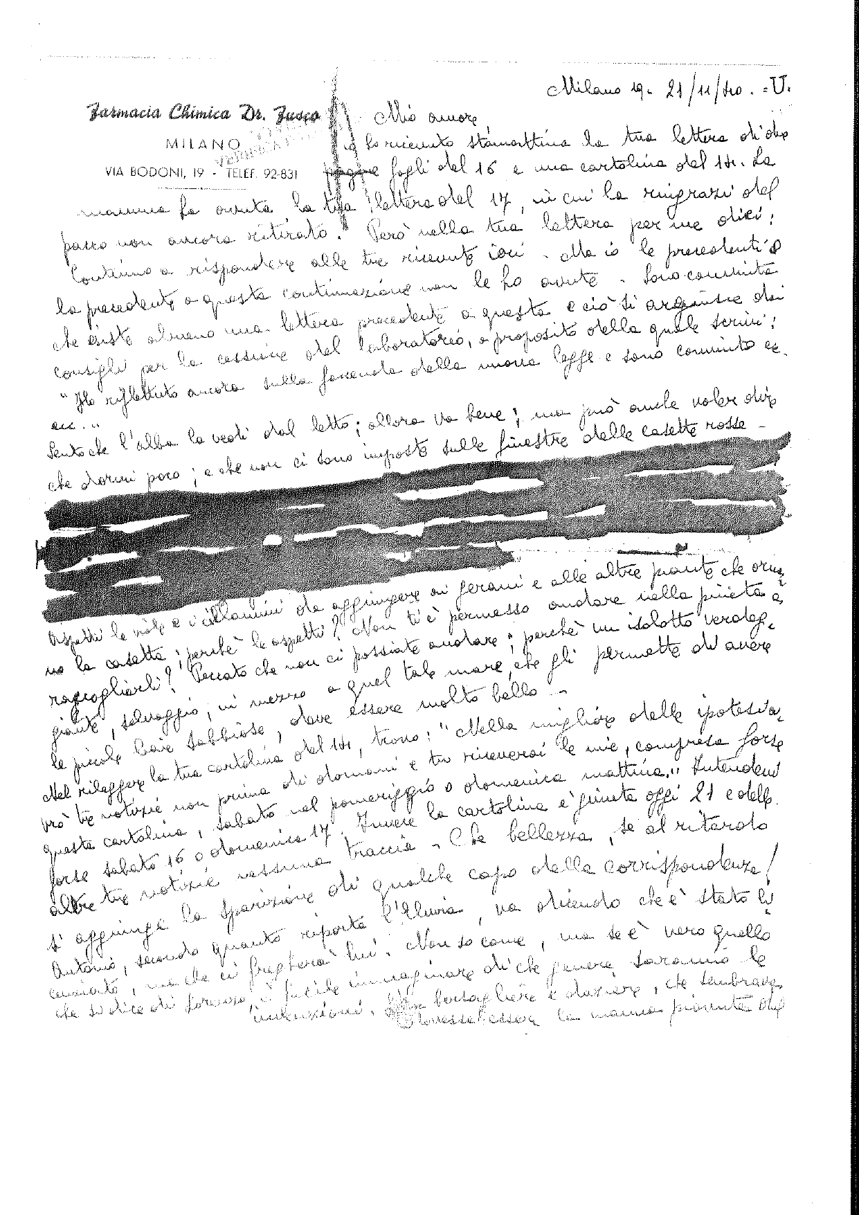 Lettera di Tita del 21 novembre 1940 con le cancellature della censura