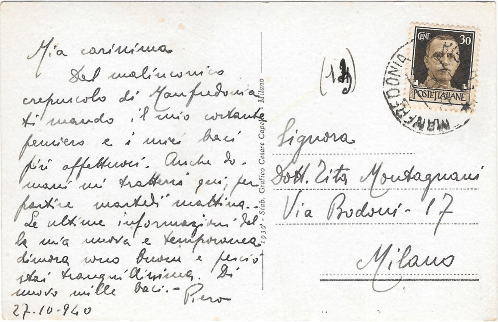 Fuggevole ma abbastanza esplicito è il giudizio su Manfredonia nella lettera del 27 ottobre 1940:
