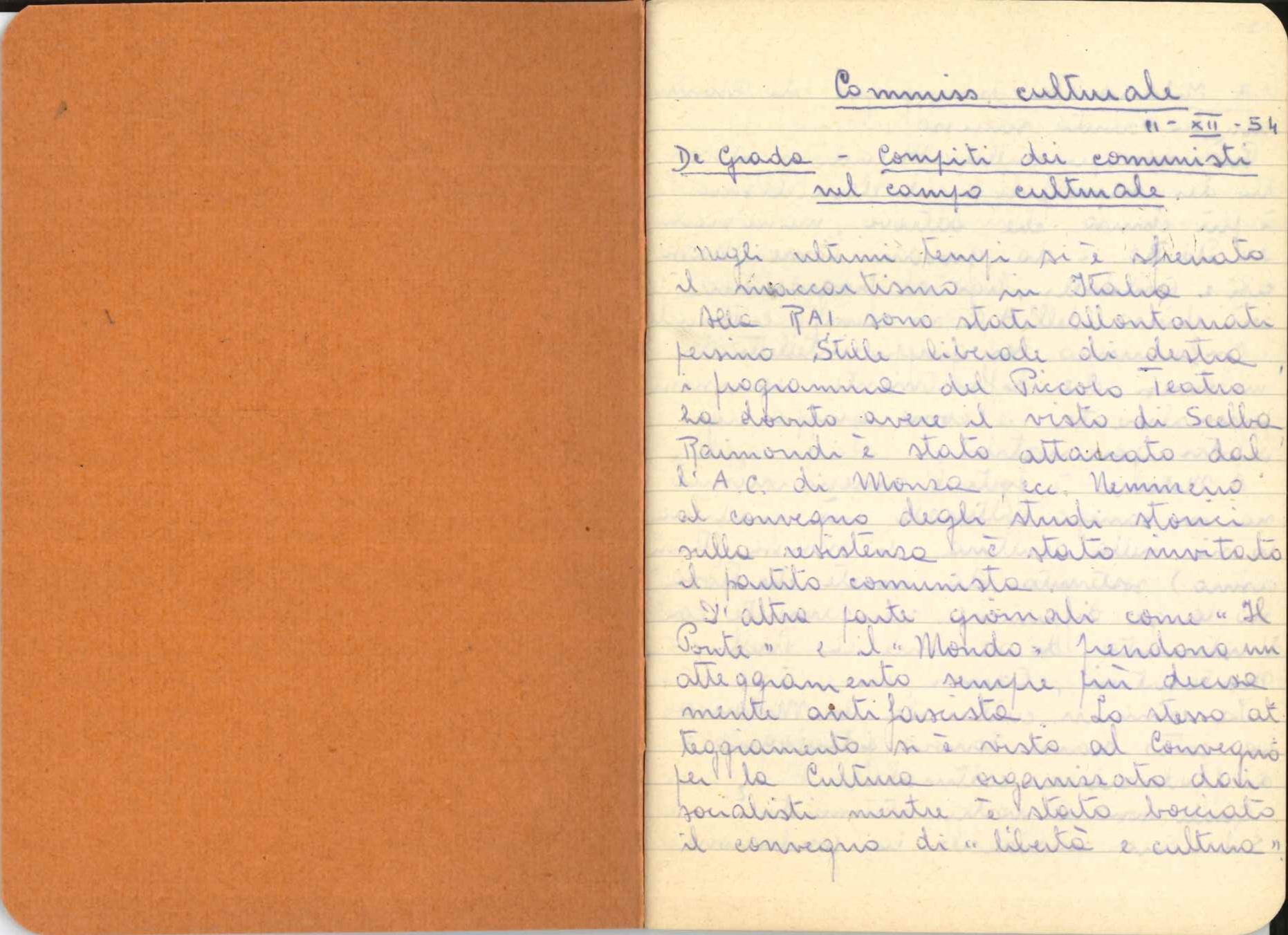 […] poi riunione di frazione, i compagni erano tutti d’accordo, ma mi sembravano tutti maledettamente addormentati. Mi illudo che fosse causa l’ora tarda, ma più probabilmente è perché sono contadini e prima che si scaldino ce ne vuole. Ma forse faranno qualche cosa anche loro.
