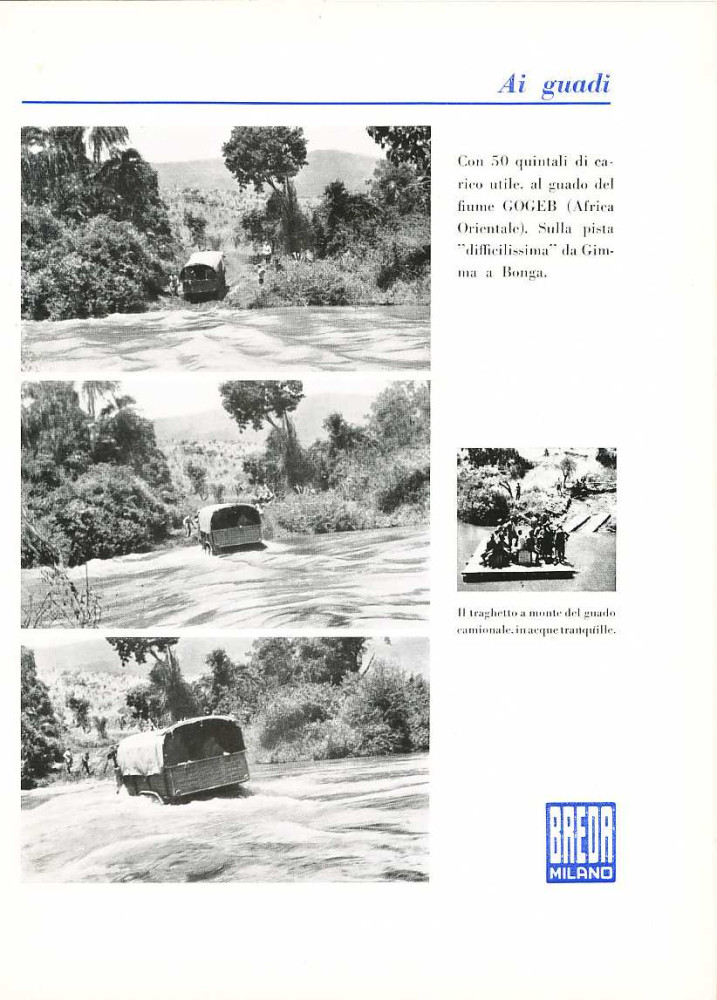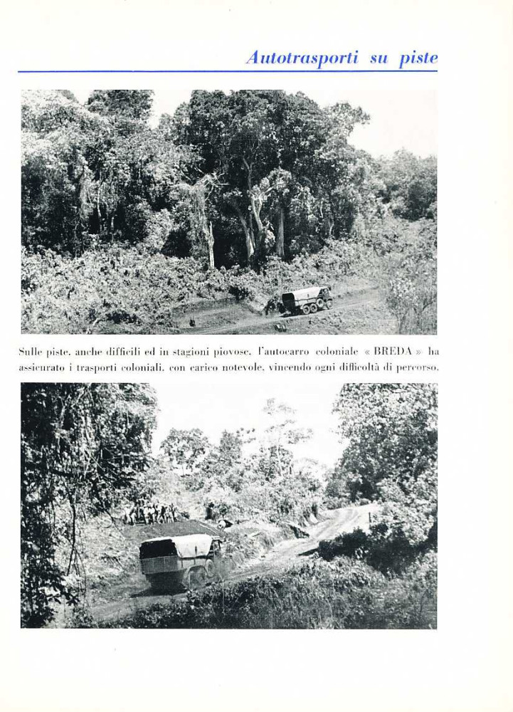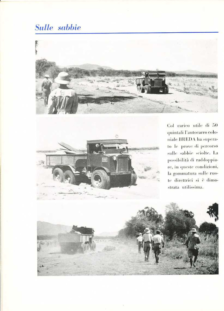 La Breda investe molto sul mezzo coloniale, realizza delle campagne pubblicitarie affidate a grafici molto rinomati all’epoca, e in particolare allo Studio Araca. Le prove sperimentali svolte in Africa nel 1938 ottengono peraltro un certo riscontro sulla stampa nazionale.