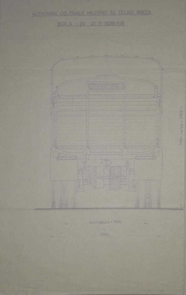 “La progettazione è stata diretta ad ottenere un autoveicolo che rispondesse alle necessità militari e civili ad un tempo, quindi adatto per servizi stradali, semi campali e campali (cumulativamente) specie in Africa […]. Per soddisfare 'cumulativamente' a tutti i predetti servizi che hanno finora distinto gli automezzi nelle due ben note categorie di 'stradali' e 'campali', l’autotelaio Breda realizza una costruzione tutt’affatto nuova, con la principale caratteristica rappresentata dal suo sistema rotolante, il quale comprende 8 ruote, e cioè: 2 anteriori direttrici […] munite di oscillazione molleggiata per l’aderenza ai dislivelli, 4 posteriori […] con oscillazione molleggiata assicurante l’aderenza totale al terreno, 2 di riserva […] che sono anche 'portanti' per proteggere gli organi bassi dell’autotelaio dagli ostacoli campali”.